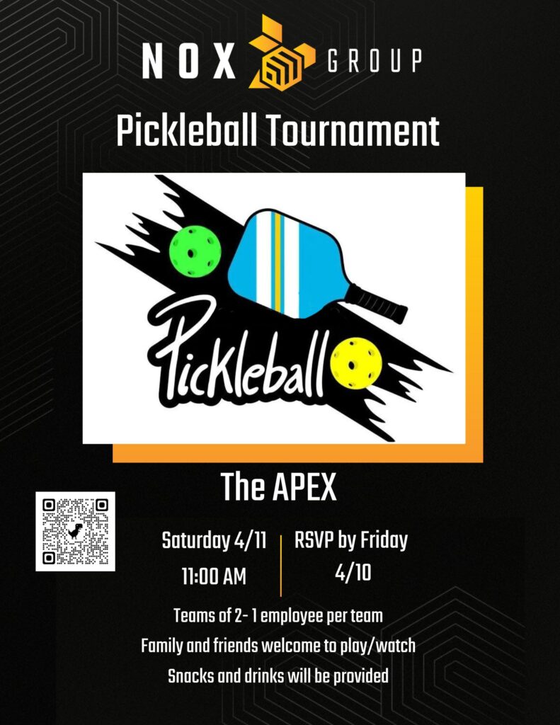 Tournament will be either single or double elimination based on amount of sign ups- will be announced at the Pickleball Tournament Saturday morning. Please reach out to Amber Romero (am.romero@nxg.us or 480-952-4262)